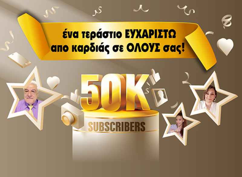 50.000 συνδρομητές στο κανάλι μας στο youtube και συνεχίζουμε! Σας ευχαριστούμε!